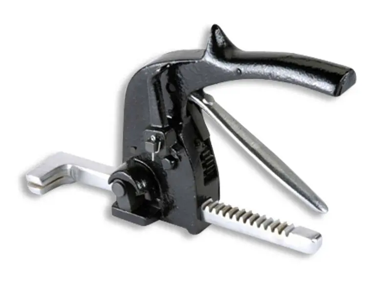 An economy pusher bar tensioner is a manual strapping tool specifically designed for round or irregular loads (like pipes, bundles, or coils) where a flat-base tensioner cannot sit flush. It operates by pushing a closed seal against the load to create tension.