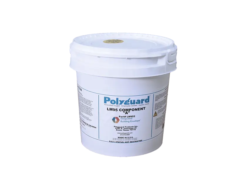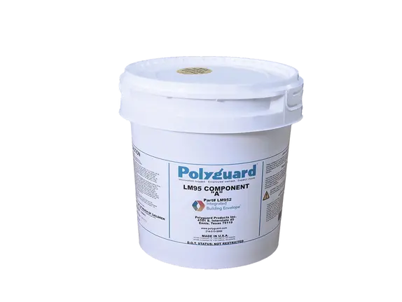 LM-95 is a two-part component urethane waterproofing membrane to be used in a variety of applications in conjunction with the Polyguard® waterproofing system. It is designed for use in several different detailing applications, including creating a fillet at the junction of the footing and foundation, creating a collar around drain detailing areas, as a termination flashing material for protrusions through the waterproofing system, and for terminations and flashings to curbs and parapets on plaza decks or other similar horizontal applications. LM-95 can be applied in ambient and surface temperatures of 40°F (5°C) and rising. Sold in a 2-gallon pail  |