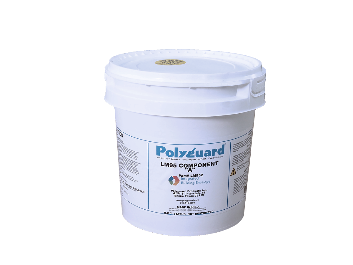 LM-95 is a two-part component urethane waterproofing membrane to be used in a variety of applications in conjunction with the Polyguard® waterproofing system. It is designed for use in several different detailing applications, including creating a fillet at the junction of the footing and foundation, creating a collar around drain detailing areas, as a termination flashing material for protrusions through the waterproofing system, and for terminations and flashings to curbs and parapets on plaza decks or other similar horizontal applications. LM-95 can be applied in ambient and surface temperatures of 40°F (5°C) and rising. Sold in a 2-gallon pail |