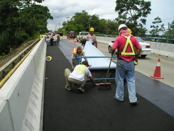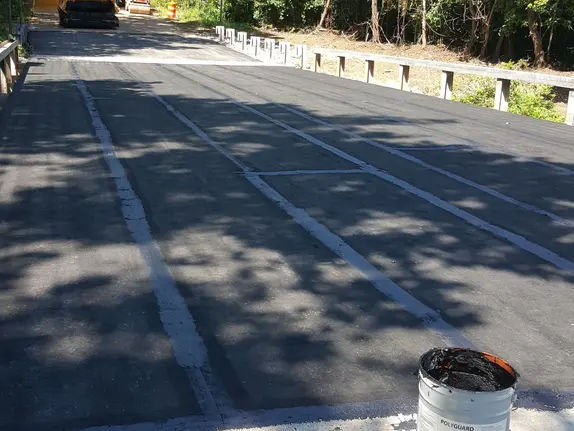 | NW75 Membrane is a 65-mil membrane comprised of a non-woven polypropylene fabric laminated to a rubberized asphalt waterproofing sealant-adhesive. NW75 seals and waterproofs joints and cracks, as well as bridge decks when installed following Polyguard installation guidelines. The open fibers of the non-woven geotextile fabric provide a mechanical bond to the new asphalt overlay, while the rubberized asphalt sealant-adhesive bonds to the existing pavement surface. NW75 is available for purchase in the following sizes: 12” x 200’ 24" x 100’ 48” x 50’ |