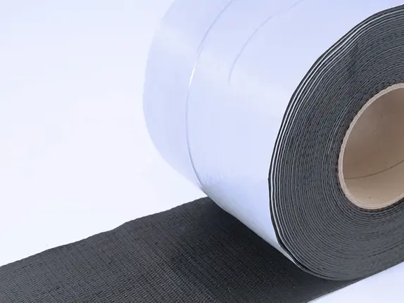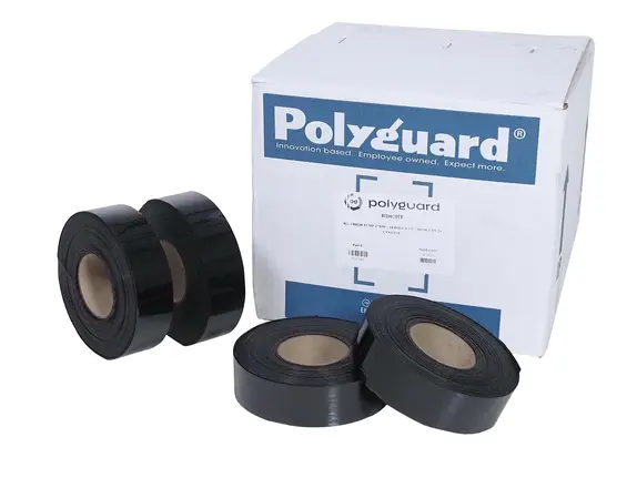 RD-6 HT coating is manufactured in rolls for ease of application using a Polyguard approved machine such as the Wrapster or power operated machine. RD-6 HT is produced with a silicone coated release liner to prevent the layers from adhering to one another and assist in the application process. The Polyguard Wrapster is designed with two spindles, one providing tension of the RD-6 HT coating being applied to the pipe and the other to spool the release liner during the application process. RD-6 HT utilizes compression and tension during the application process made possible by the woven geotextile, polypropylene backing to ensure proper long-term performance. RD-6 HT may be applied manually without using the Wrapster, but it is important to recognize that adequate tension should be used consistently during its application.