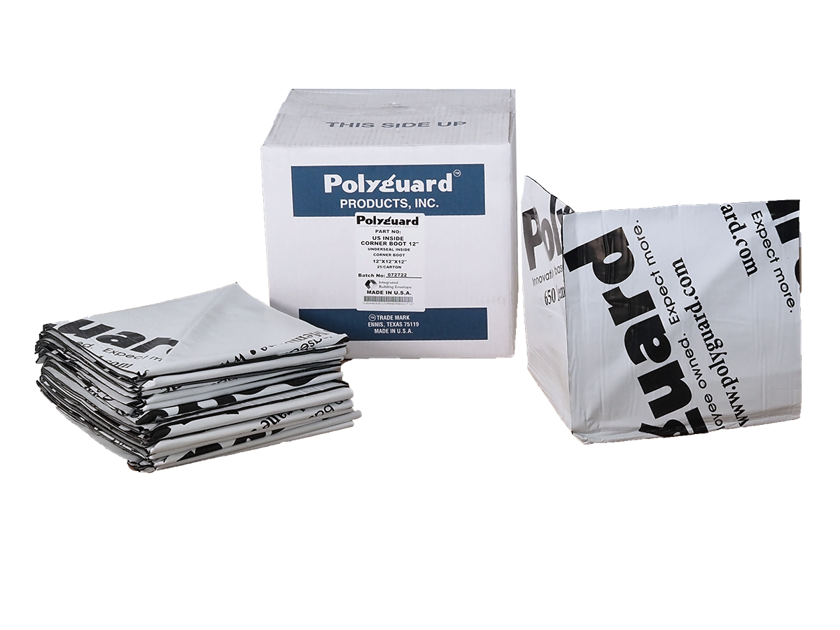 This corner boot is 12" x 12" x 12" for use with Underslab or Blindside applications.
