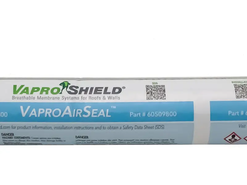 VaproAirSeal is a single component air and watertight sealant. It is suitable for use in all climates. VaproAirSeal is applied in vertical and horizontal above grade rough opening applications and transitions to all VaproShield WRB and Air Barrier membranes.
