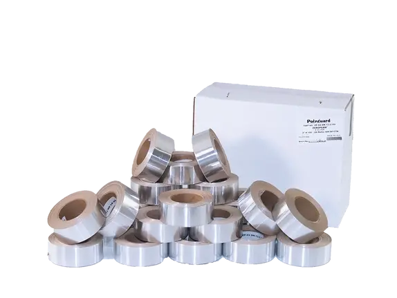 | ZEROPERM® A Tape is available to complete installation in the field. It uses a high quality, acrylic adhesive with excellent cold weather performance. ZEROPERM® A Tape has a kraft release liner and is typically used for sealing longitudinal and circumferential laps. It is available in 2” and 3” wide rolls. Made from the same material as the ZEROPERM® Vapor Barrier, the tape maintains an absolute “zero perm” barrier that provides maximum protection for all types of insulations used in below ambient, sub-freezing and cryogenic applications on duct, pipe, or vessel systems. ZEROPERM® Tapes are used as part of the ZEROPERM® Vapor Barrier System on cold pipe applications either between layers of insulation on sub-freezing projects like LNG piping, or as the outer vapor-barrier jacket on ammonia, brine or glycol systems under mechanical jacketing, either metal or PVC. ZEROPERM® can also be used on chilled water systems replacing ASJ and PVDC jacketing either left exposed or under a protective metal or PVC jacket. |
